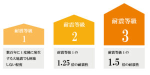 住宅性能表示制度では、耐震等級を1~3で表しています。